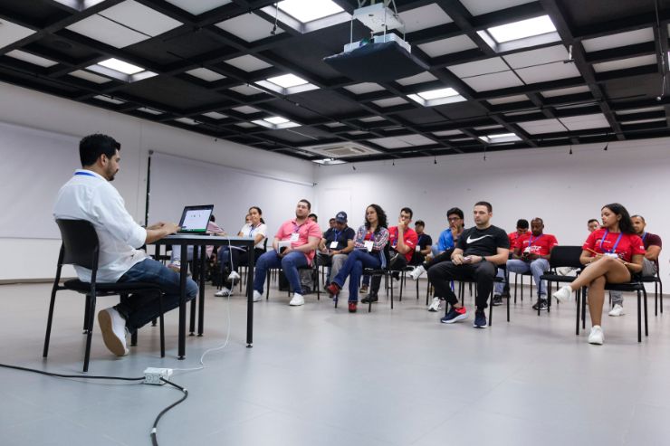 Durante el espacio se conformaron equipos de trabajos para la creación de proyectos en Inteligencia Artificial (9 equipos) y Emprendimiento de base tecnológica y digital (6 equipos), quienes estuvieron acompañados por los mentores expertos en estos temas.