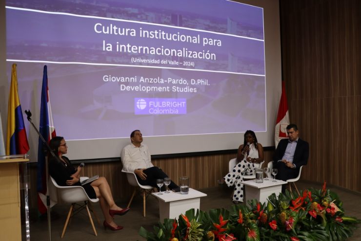 Tras la firma del convenio Fulbright, se llevó a cabo el panel "Cultura Institucional para la Internacionalización", moderado por la profesora Adriana López Valencia, Directora de Relaciones Internacionales. Durante el panel, el Dr. Giovanni Anzola Pardo, junto a los profesores Esther Cecilia Wilches de la facultad de salud y Rodrigo Vargas Peña de la facultad de artes integradas, discutieron la relevancia de la internacionalización como una esperanza para el mundo. Se abordaron temas clave como las disciplinas y temáticas del futuro frente a las demandas laborales, y se resaltó la importancia de la investigación aplicada para generar soluciones con impacto global. Así mismo el panel deja un mensaje a la comunidad académica para motivar el trabajo colaborativo, destacando la importancia de todos los estamentos y la necesidad de coordinación de los esfuerzos institucionales que permitan a la internacionalización ser un instrumento para mejorar la calidad de la educación.