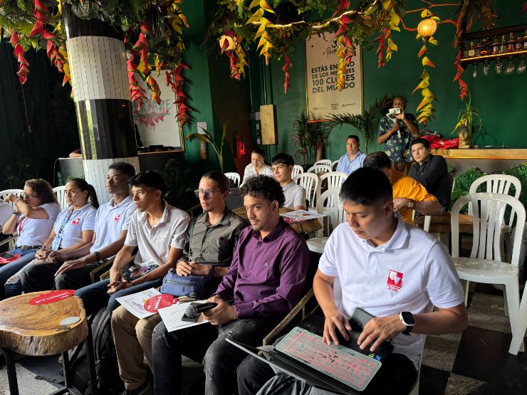 En la tarde, los equipos crearon sus pitches, fueron evaluados por un panel de jurados conformado por Ángela Romero, directora de Sostenibilidad de la Pérgola; Diana Riveros, directora del Centro Javeriano de Innovación y Emprendimiento de la Pontificia Universidad Javeriana, y Lina Pérez, directora de Sinapsis de la Universidad Autónoma de Occidente. Los jurados seleccionaron a tres equipos destacados: