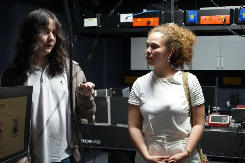 Durante su visita a la sede Meléndez de Univalle, la ministra Olaya recorrió los laboratorios del Departamento de Física CIBioFi, donde el Vicedecano de investigaciones Omar Calderon y el Decano César Valenzuela de la Facultad de Ciencias Naturales Y Exactas junto a estudiantes de pregrado y maestría de Física compartieron con entusiasmo los avances de sus proyectos de investigación relacionados con física cuántica, óptica y otras áreas afines.