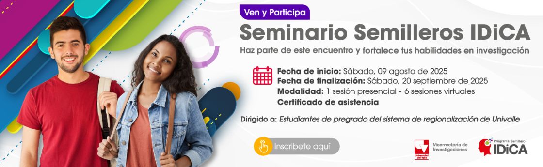 La Vicerrectoría de Investigaciones de la Universidad del Valle abrió la convocatoria para participar en el Seminario para Semilleros IDiCA, un espacio formativo dirigido a estudiantes de pregrado del sistema de regionalización que deseen iniciarse en el mundo de la investigación.