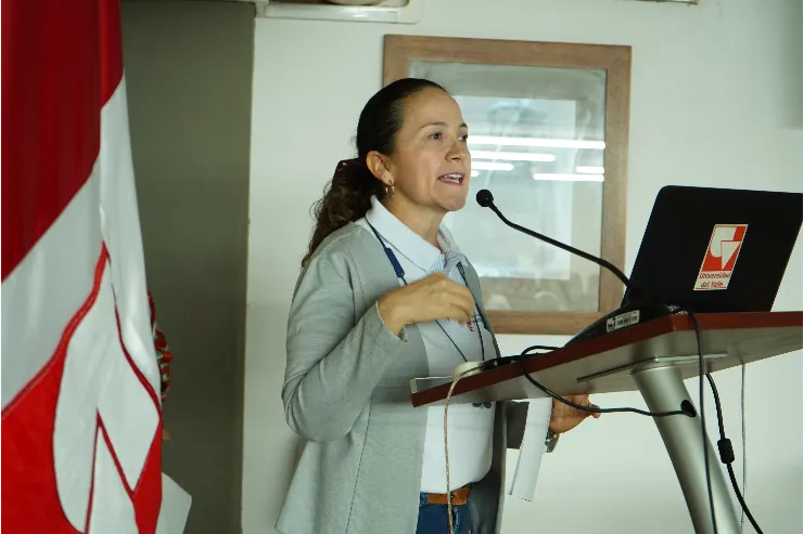 La apertura estuvo a cargo de la profesora Adriana Patricia López Valencia, Directora de la DRI, quien dio la bienvenida a los asistentes y destacó la importancia de estos espacios para construir redes de colaboración y fortalecer la internacionalización de la investigación en la universidad.