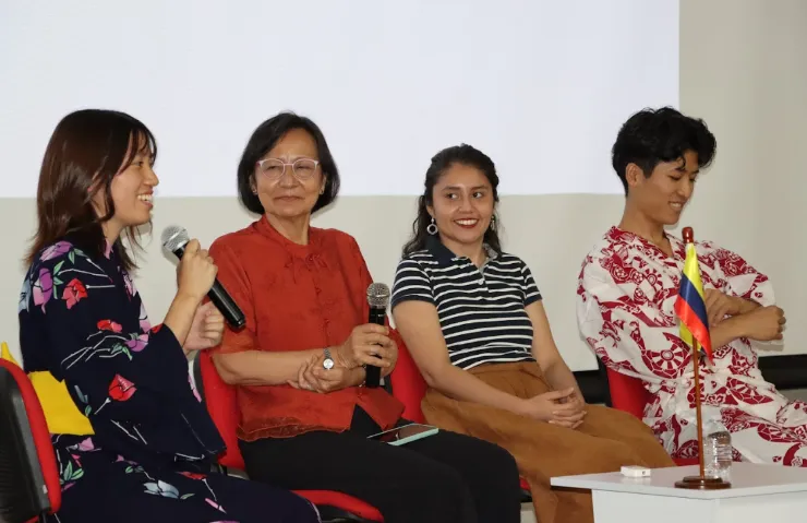 Desde la Universidad del Valle, la profesora Akemy Duarte, de la Escuela de Ciencias del Lenguaje, ofreció una visión académica sobre el aprendizaje de lenguas extranjeras y la importancia de la competencia intercultural. Junto a ella, Ana Campos, estudiante de la misma escuela, compartió su experiencia como becaria en un programa de intercambio académico en la Universidad de Tenri, en Japón, motivando a sus compañeros a participar en oportunidades de movilidad internacional: