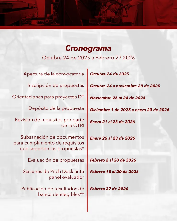 La Vicerrectoría de Investigaciones de la Universidad del Valle abre oficialmente la Convocatoria Interna “Hecho en Univalle” 2025–2026, dirigida a apoyar proyectos de desarrollo tecnológico e innovación con potencial de TRANSFERENCIA, ya sea que estén protegidos o no por mecanismos de propiedad intelectual.
