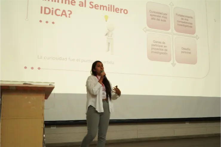 La jornada inició con las palabras de bienvenida de la Vicerrectora de Investigaciones, profesora Mónica García, y la presentación del Programa Semillero IDiCA a cargo de la coordinadora del área de proyectos, ingeniera Luz Piedad Arrigui, quienes destacaron la importancia del trabajo colaborativo entre facultades y la formación de nuevos investigadores desde etapas tempranas del pregrado, así como el interés de la comunidad en el programa Semilleros IDiCA evidenciado en el crecimiento en participación de los estudiantes en el programa.